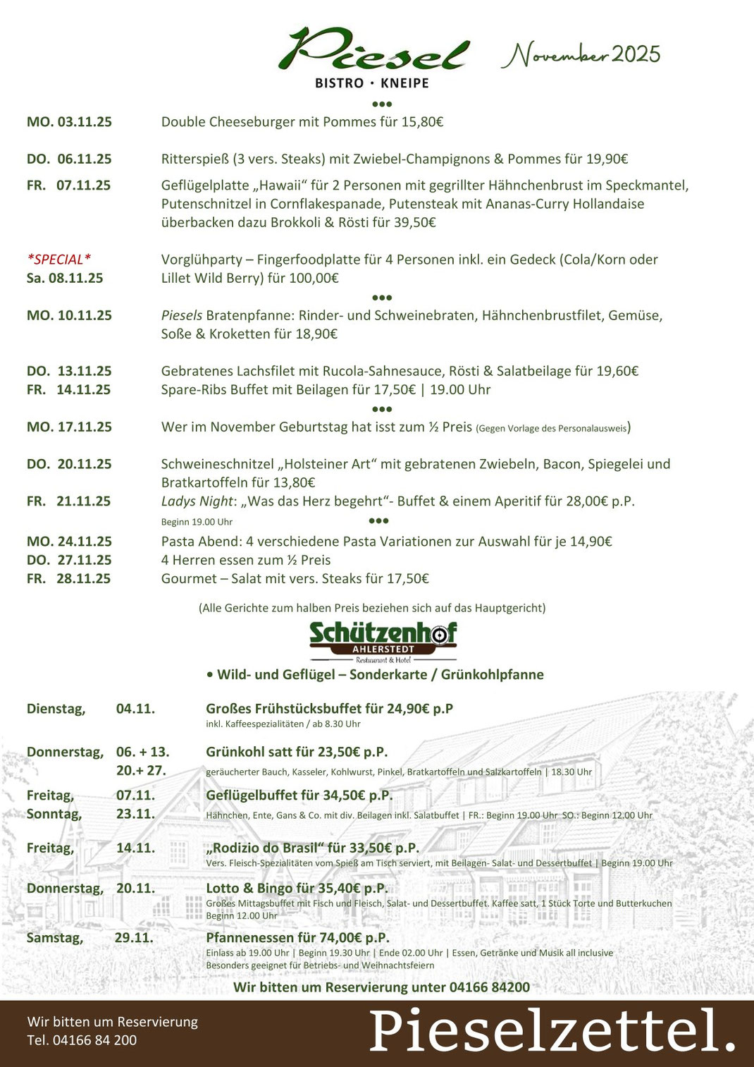 Für jede Veranstaltung bitten wir um Reservierung unter 04166-84200.