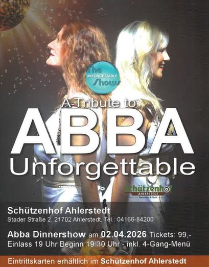 Donnerstag, 02.04.2026 ABBA - Unforgettable 99,00€ p.P. inkl. 4 Gang Menü & toller Show