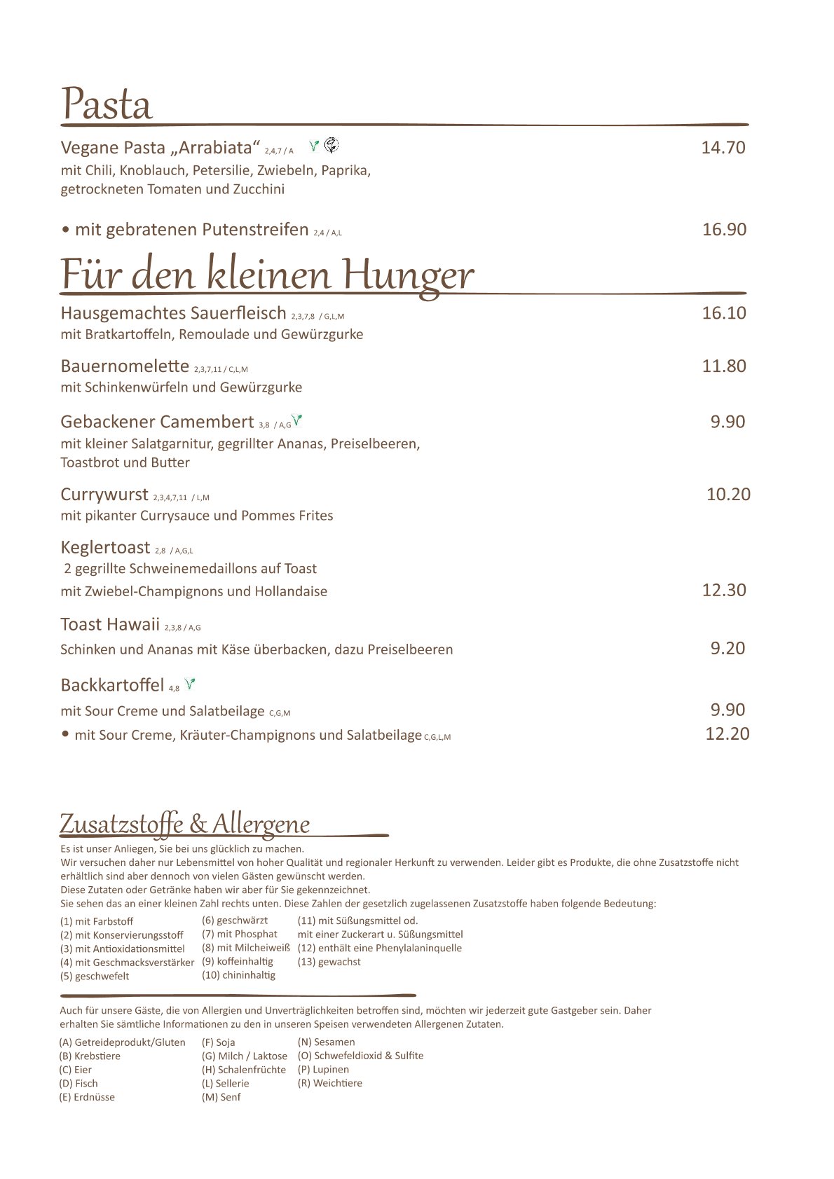 Die Gerichte aus unserer Speisekarte können Sie auch zum Abholen bestellen